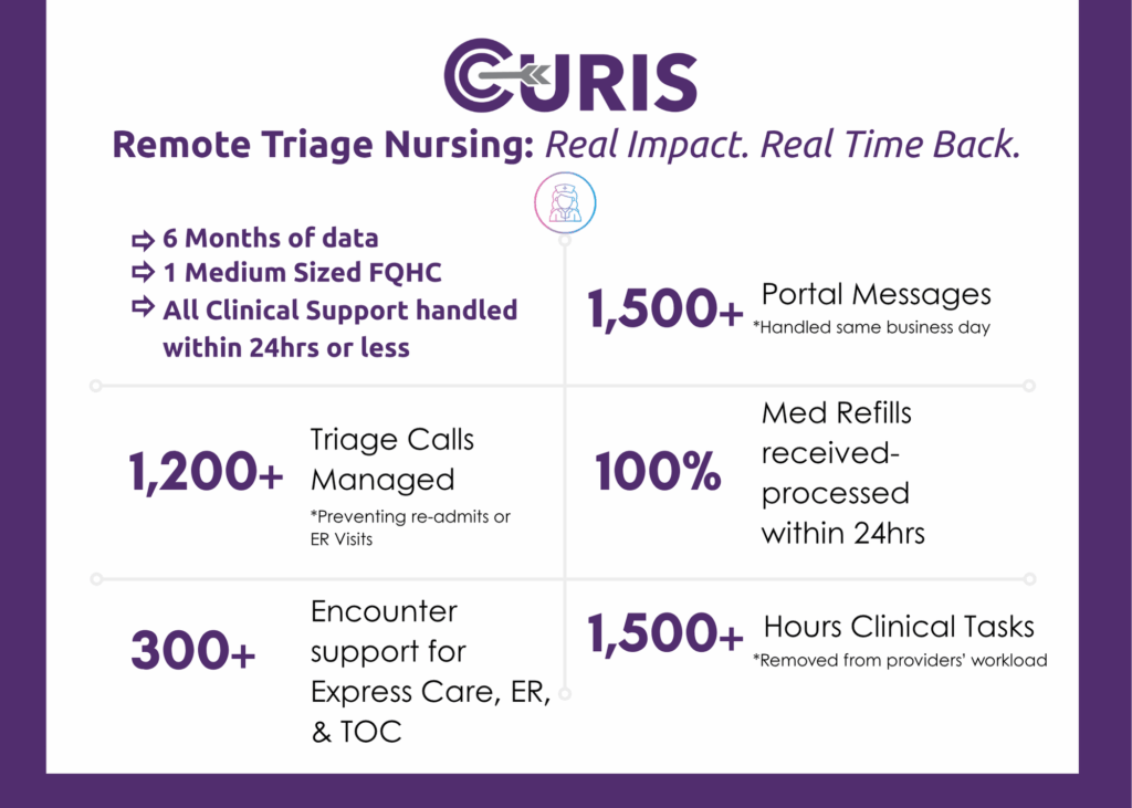Great News! We have the solution. We have a whole team of remote care coordinators, triage nurses, and administrative specialists who are ready to assist. Our services include remote triage nursing, managing medication refills and prior authorizations, handling nursing inboxes, and much more. Plus, we take care of all management, training, and administrative responsibilities — so you can focus on delivering exceptional care.