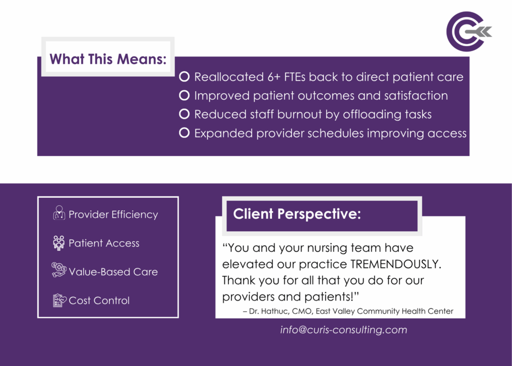 CURIS brings a highly efficient blend of people, process, and technology to optimize your health center organization. Our innovative model helps to solve challenging workforce; budgetary constraints facing health centers across the country!
